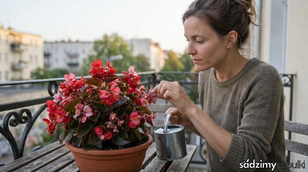 Aby ułatwić sobie życie, warto podczas sadzenia wymieszać ziemię z hydrożelem. Magazynuje on wodę i oddaje ją korzeniom w momentach suszy, co może uratować roślinę w upalne popołudnie. Pamiętaj też, że begonie na słońcu są bardziej „żarłoczne” – częstsze podlewanie wypłukuje składniki odżywcze, więc regularne nawożenie jest niezbędne.