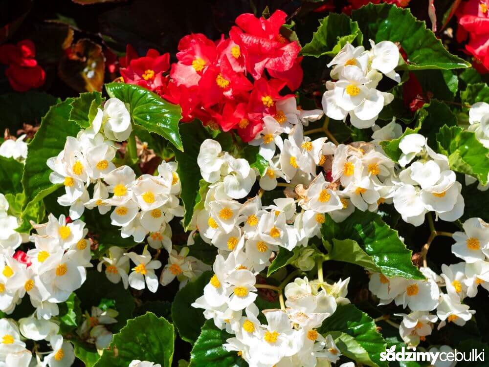 Begonia stale kwitnąca (Begonia semperflorens) – niezwykle wytrzymała i łatwa w uprawie. Ma drobniejsze kwiaty (białe, różowe, czerwone), ale nadrabia ich ilością – kwitnie nieprzerwanie aż do przymrozków. Doskonała dla początkujących, świetnie radzi sobie w słońcu i półcieniu.